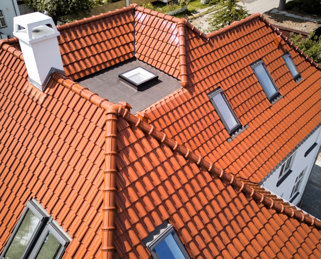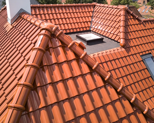 Okerbrun glasert dobbeltfalset takstein