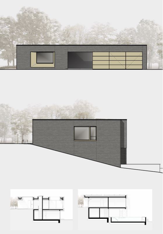 Den bratte tomten krevde nøye planlegging, men ga også en mulighet til å integrere bygningen i landskapet. Forsiden er diskret med få åpninger, integrert garasjeport og minimalistiske detaljer – alt for å skape et beskyttet, monolittisk uttrykk mot gaten. Baksiden er det motsatte: åpen, lys og generøs. Store vinduer fra gulv til tak visker ut grensen mellom inne og ute. Smarte innhakk gir skygge, balanse og beskyttede uteområder – et tegn på gjennomtenkt lys- og klimadesign.