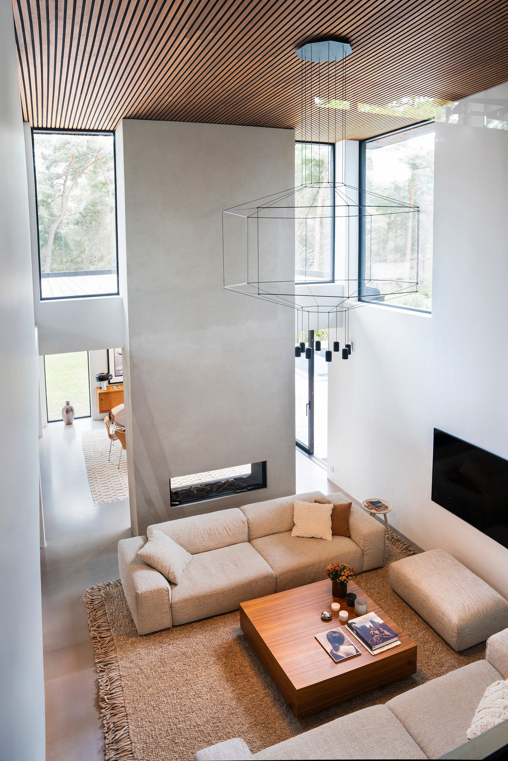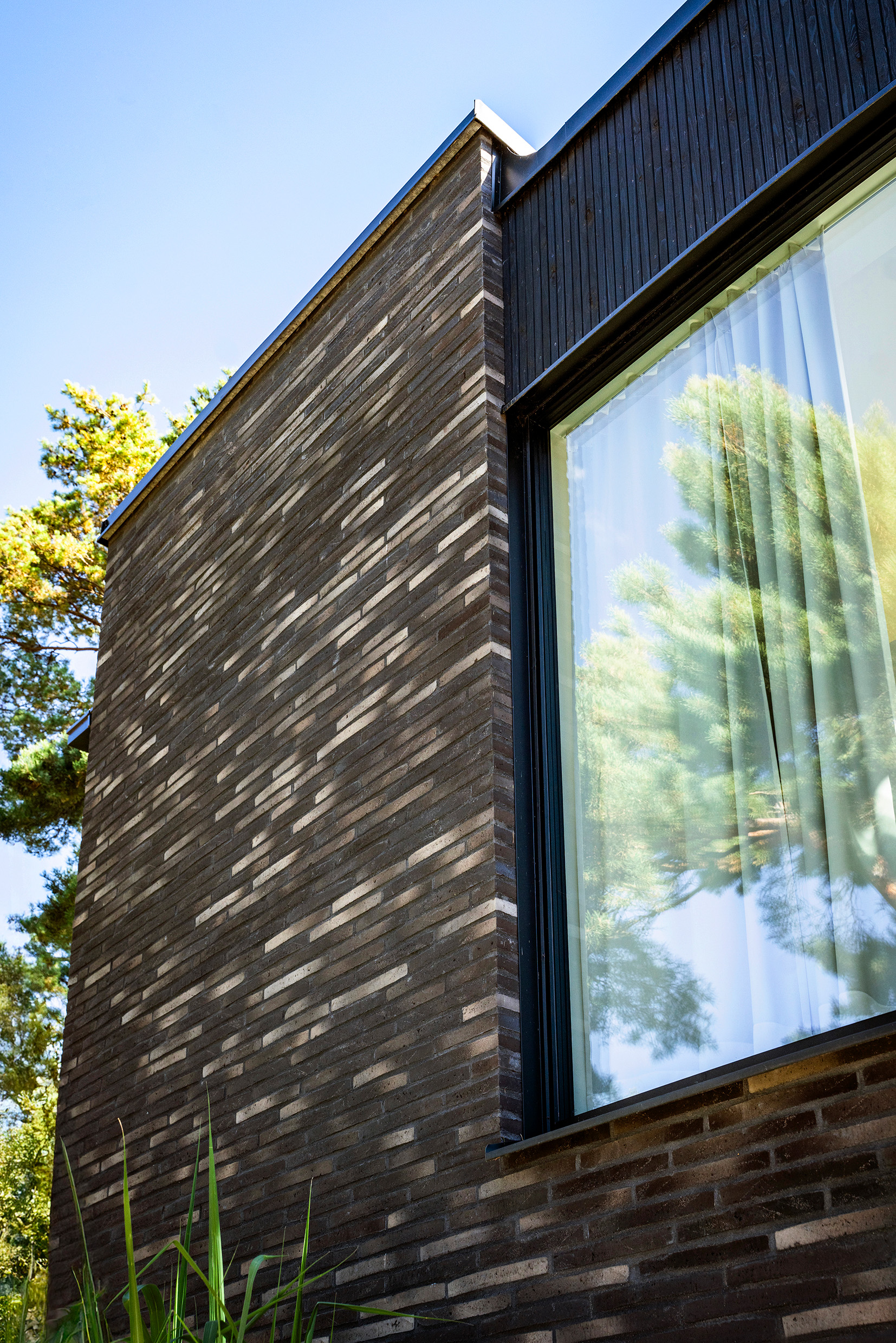 Sand and brick. Pine trees and wood panel. The client had a dream. They wanted a modern, timeless home with respect for the site and its surroundings. The client had a spacious program and wanted light and openness but at the same time privacy. They wanted a two-storey house and us to maximize the building area.