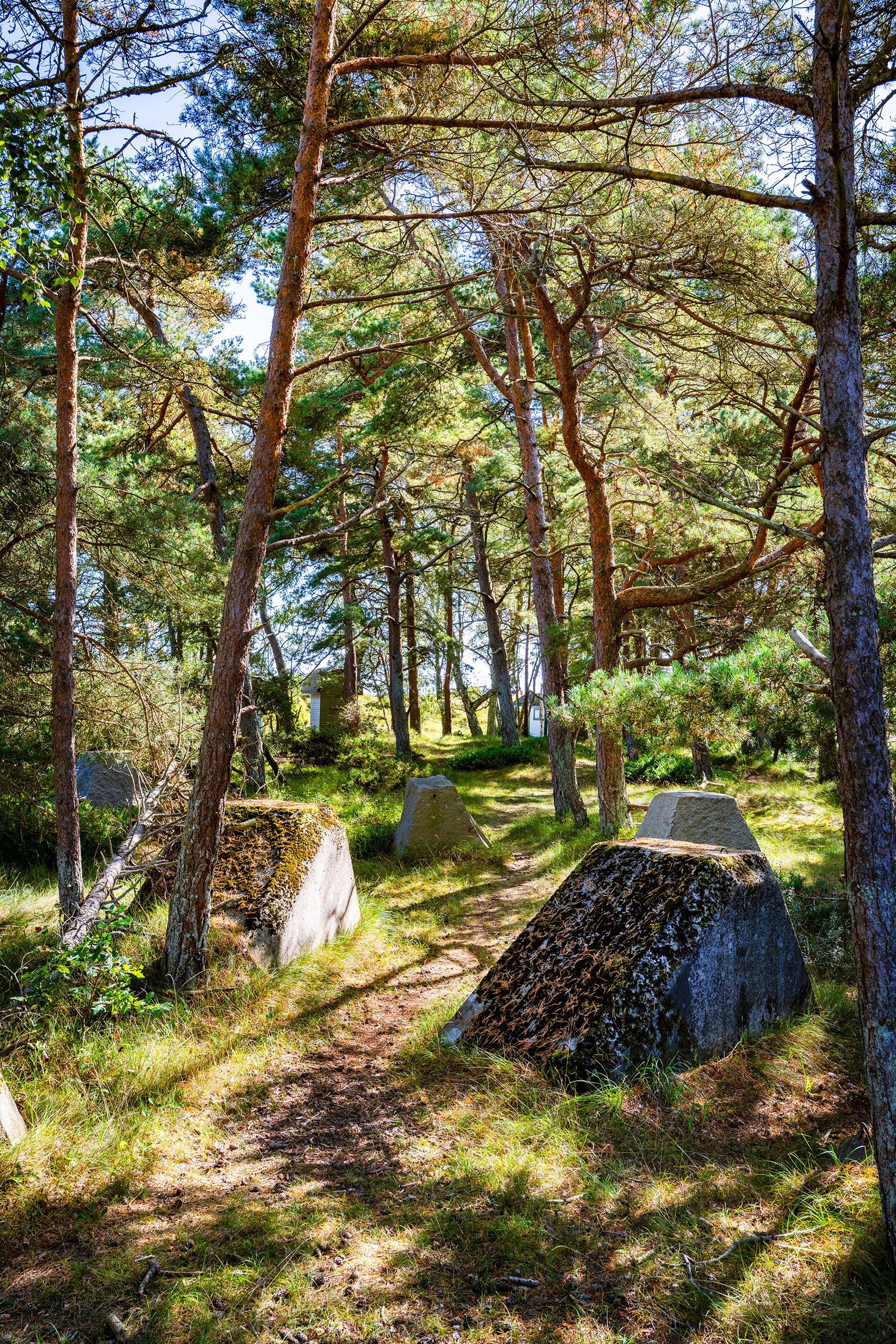 The client bought the site with an old summerhouse from the 1940s, one of the few remaining sites in the surroundings. The site is on the edge of the settlement and nature, facing south and west with the sea on a short distance. A beautiful place with sand, heather, moss and pine trees, not far from the Falsterbo channel. During WWII the site was a part of the Swedish defence line “Per Albin-line” that stretched around the shores of southern Sweden. There are several concrete tank obstacles which we were not allowed to move.