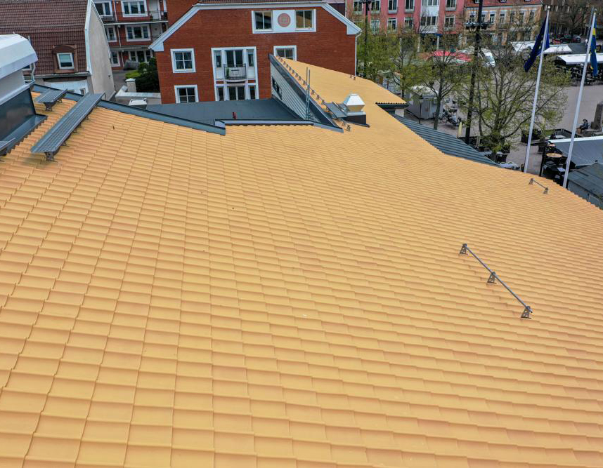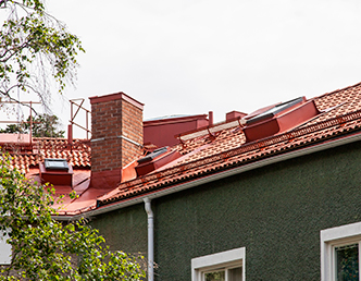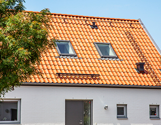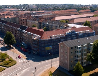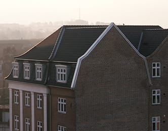 A stone's throw from the fjord of Aalborg is a group of large apartments situated with great views. The building has been renovated with the RT 840 silk-matte roof tiles to match the existing design and preserve the building’s classic appearance.