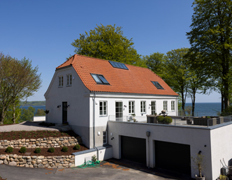 This unique location at Kolding Fjord calls for a very special house – and for a roof with character and flare. This completely renovated white mason with private pier and stunning views has been refurbished with glazed Laumans roof tiles. The roof is not only a good match for the house and its surroundings. The extra thick glaze, which creates the matte look, also provides a sturdy roof that is completely algae and dirt repellent and extravagantly looking.