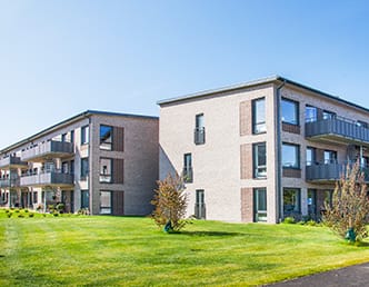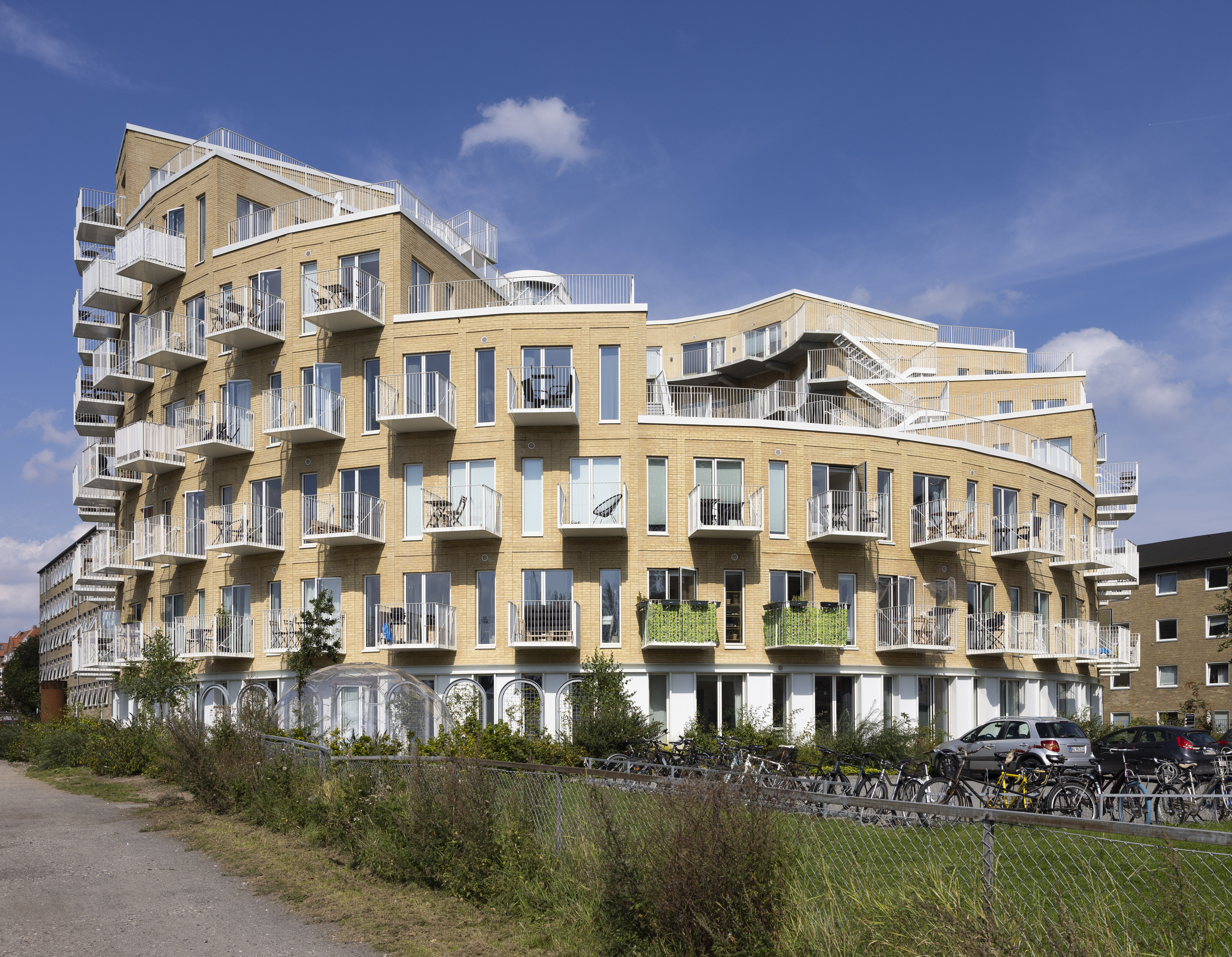 A lovely apartment house that dwells together in harmony with the surrounding greens and common gardens. Bright yellow brick colours, beautiful wooden details and roof gardens create an appealing and relaxing atmosphere.