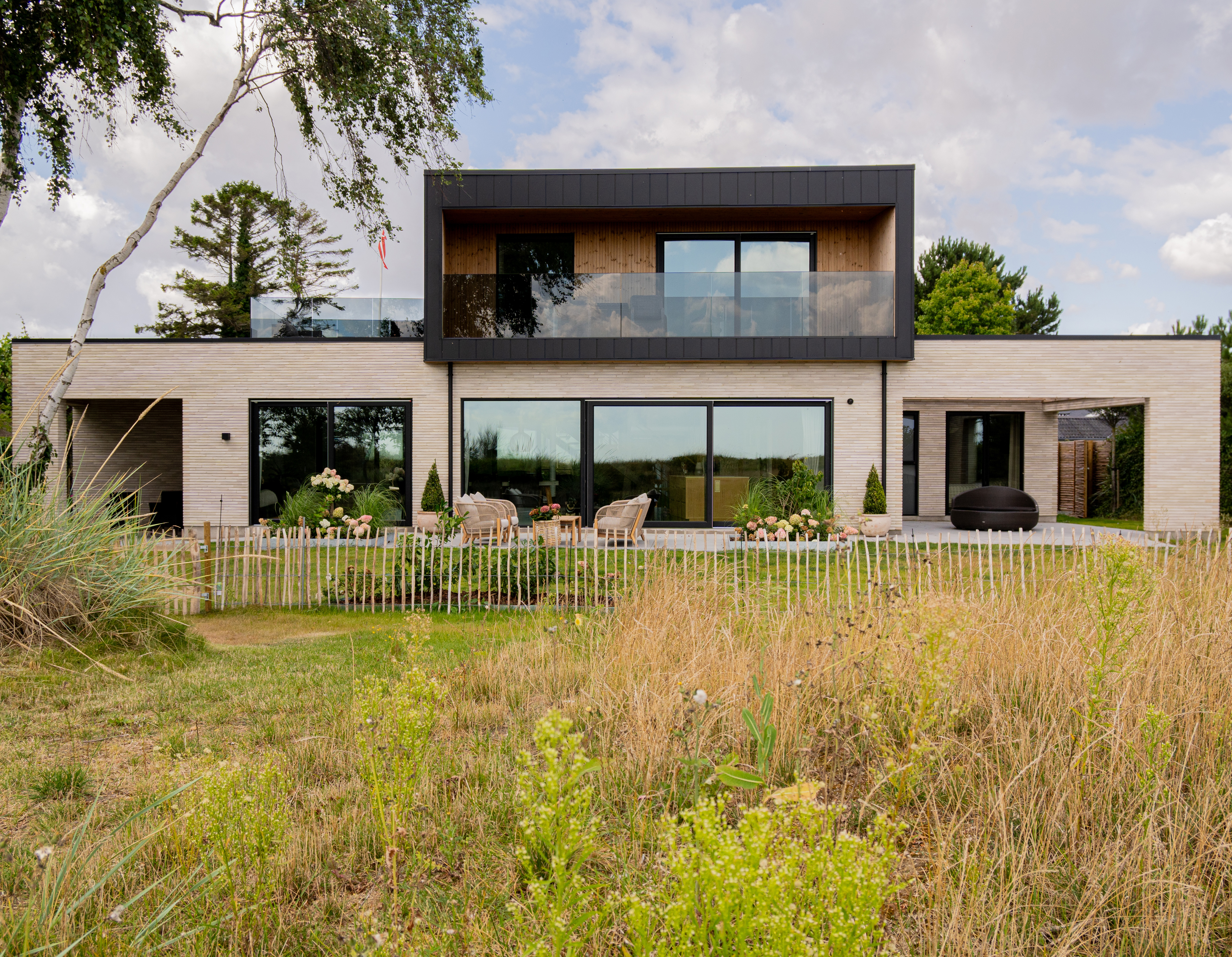 I 2019 påtog de sig opgaven at skabe en skræddersyet bolig til en familie, som søgte maksimalt privatliv. Svaret blev et U-formet hus med en lukket facade og en indre gård, der kombinerer stilhed med naturlig belysning og rumbredde takket være generøse vinduespartier.