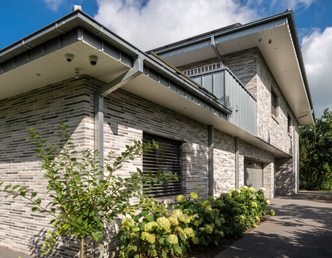 Med Villa K. har utbyggerne i Saarlouis, Tyskland, oppfylt en ekte drøm. Den nøye designede bygningen utstråler tidløs eleganse, ikke minst på grunn av det minimalistiske utseendet. Langformatsteinen ULTIMA RT153 ble i dette prosjektet også brukt som kledning på en kjøkkenvegg innendørs.
