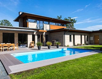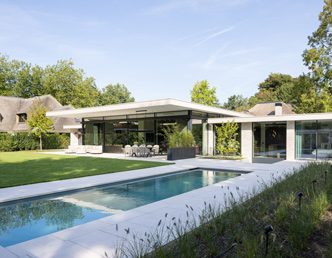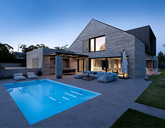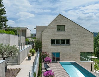 The sand-coloured diversity of RT 154 Ultima is quite the perfect fit – from the front as well as the pool-site of the house.