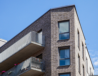 These private residences in Berlin have an elegant way of inviting you in. From the green and gray brick-sectioned courtyard to the iconic curved breeze blocks, that sculp the masterpiece for this remarkable façade. The graceful arch of Ultima bricks creates a truly dramatic expression. Vertical black windows accompanied by gray concrete ribbons give the brickwork an edge of elegance. A superb display of genuine German craftsmanship.