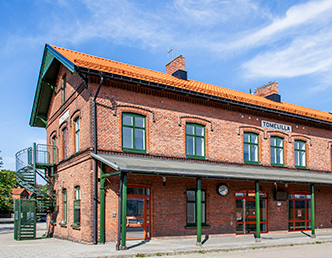 Trains have arrived in Tomelilla in the past 150 years. Now this old brick station house has got a new beautiful roof, that matches the classical style of train station houses throughout Sweden.