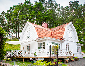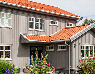 Among tree roses and green plantings, the roof tiles on this wooden villa gives that classical and cosy house-style known throughout Sweden. Only here the natural vibes mostly found in rural Sweden are in a suburb to Stockholm.